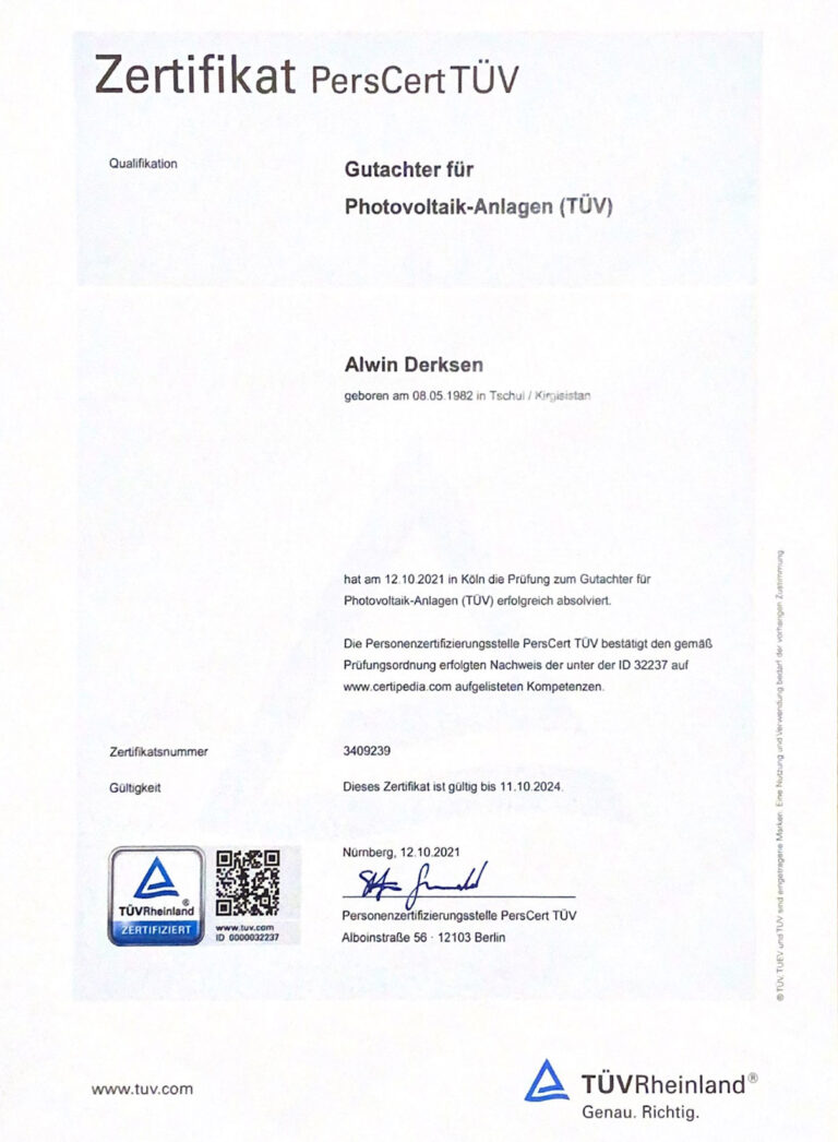 Gutachter für Photovoltaik-Anlagen (TÜV)